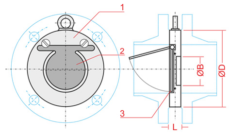 2) The outside diameter of valve is designed considering the minimum P.C.D. available in various flange standards.